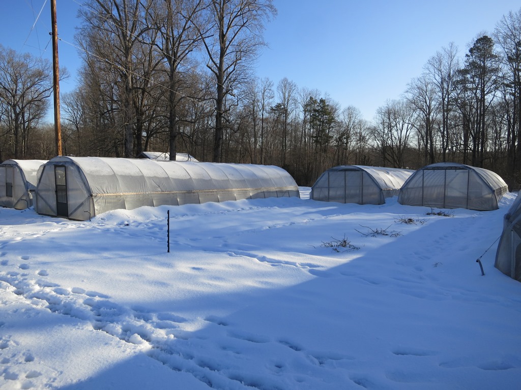 I did fly back from Texas on Tuesday a bit early to avoid any complications, which lead to less hectic preparations for the impending accumulation of all forms of frozen precipitation. Our main concern is always the unheated high tunnels. They can take maybe 6 inches of snow without any worries about collapsing but snow followed by sleet and maybe a half an inch of ice that is a whole ‘nuther thing.